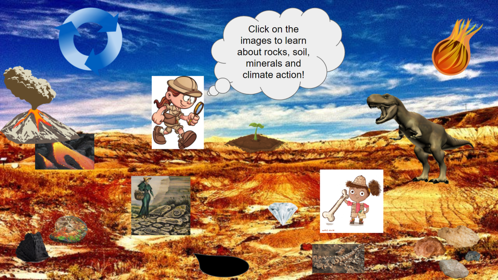 In the Rock Cycle Game and virtual choice board, students will discover the fun of being a geologist and paleontologist. Although the rock cycle is a continuous process, rocks and minerals are formed over millions of years. Therefore, they are considered to be a non-renewable resource, including fossil fuels. Resource extraction removes them from the earth where it took specific conditions and an incredibly long time to create them. Geological time puts into perspective our use of fossil fuels and the cause of radical climate change now. They will learn about the soil cycle as well as the importance of soil conservation. Students will discover actions they can do to live more sustainably, slow down climate change and conserve our Earth’s resources. Click on the Rock Cycle choice board below to Make a Copy and edit to suit your educational purposes.