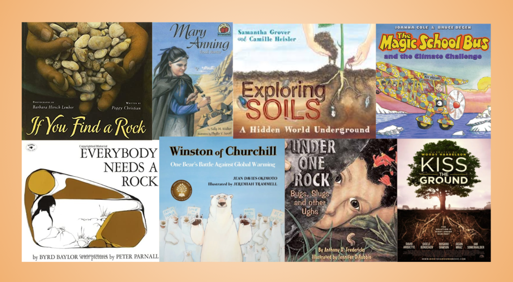 Here are some books to support learning about the rock cycle, soil and climate action.