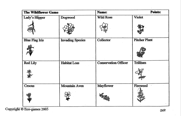 Here are some images from The Wildflower Game. Print your own to download The Wildflower Game. Go to Amazon.ca or Teachers Pay Teachers by clicking here: Eco-Games