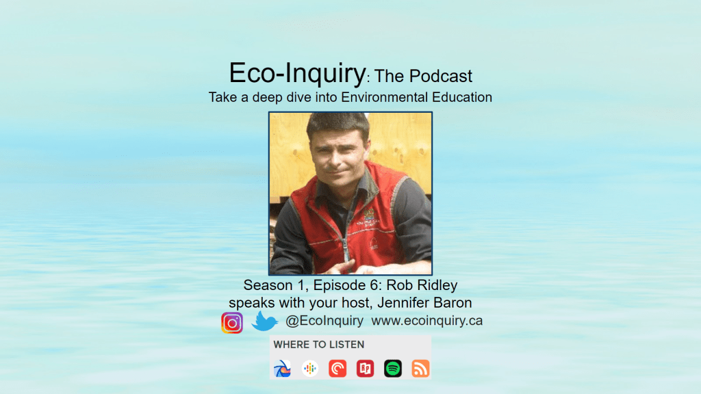 Rob Ridley is the Coordinator of Outdoor and Environmental Education for the Peel District School Board, and the long-time moderator of #EnviroEd on Twitter. In this episode of The Eco-Inquiry Podcast, Rob speaks about ways to create community and build partnerships in environmental education both in-person and online. He tells us his vision for extending the outdoor ed field centre experience! PDSB Learning Naturally Website.