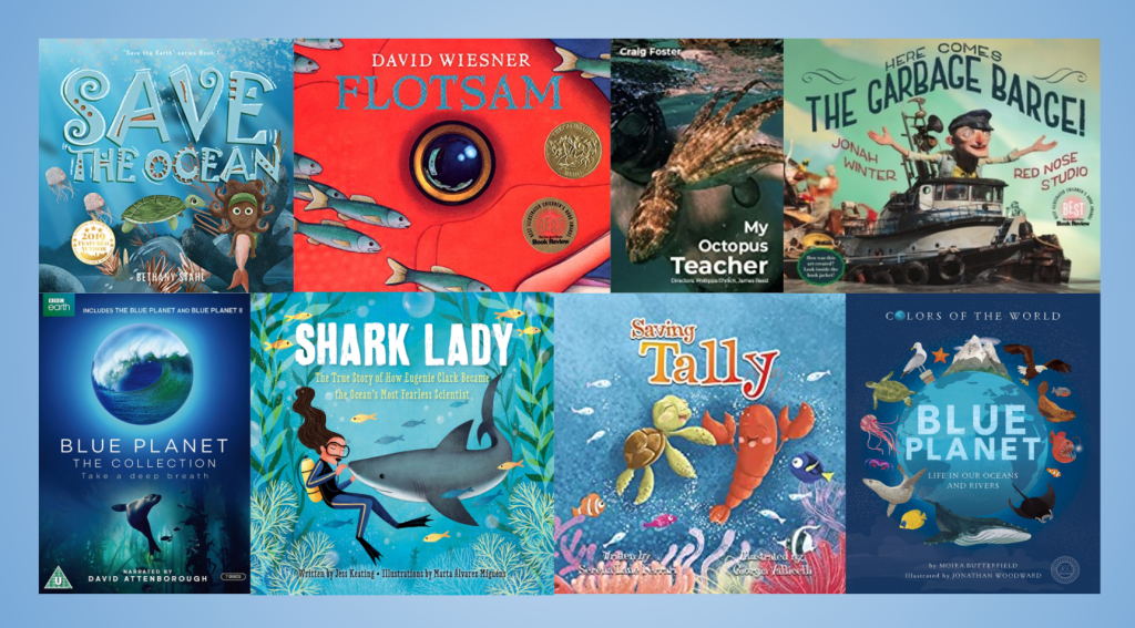 Here are some picture books to support The Ocean Game, and also to go deeper into understanding sea creatures and protecting oceans.