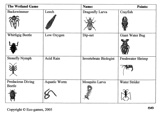 Wetland Ecosystems contain fantastic creatures, including these astounding aquatic macroinvertebrates on the Eco-Game card below. What is the secret message for The Wetland Ecosystems Game? Crack the Code and find out!